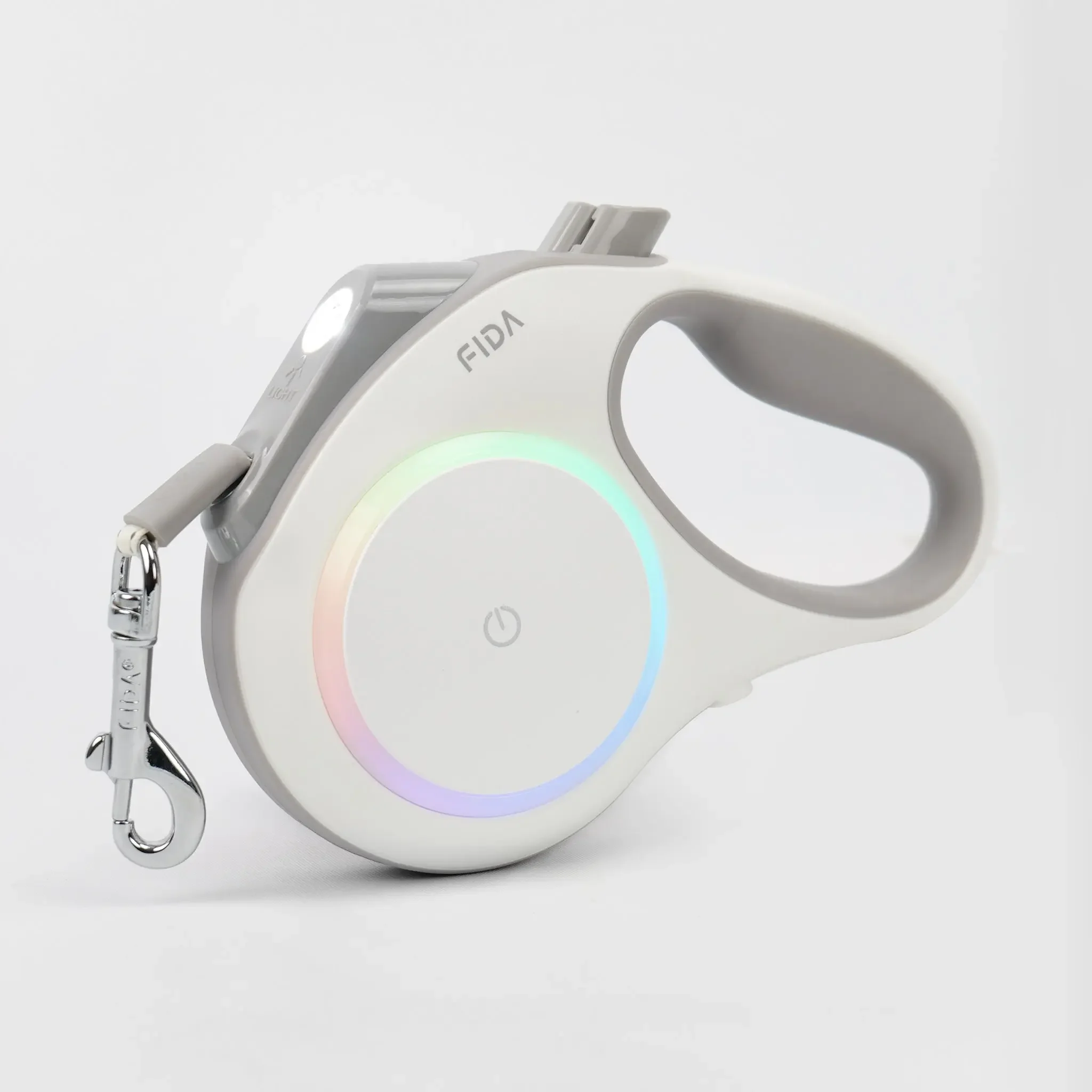 Night walks with your dog will never be the same with the Fida LED lighted retractable dog leash. The bright LED illuminates up to 20 ft. Color-changing ambient side lights provide 360° visibility. USB rechargeable battery delivers 8 hours of light. Reflective webbing with smooth 16ft retraction. Two sizes available for medium and large dogs. In addition to the LED leash Fida also makes an Autobrake leash that helps teach dogs not to pull. Buy Now