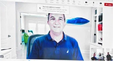My background is a piece of artwork. It is a handcrafted surfboard that has a photo of Teahupo'o, the famous surf break. It was my 50th birthday gift from my wife, Brita, and daughter, Olivia. I often get asked about the surfboard. It is a great conversation starter. We all need more of this. It helps us form bonds and find points of connection.